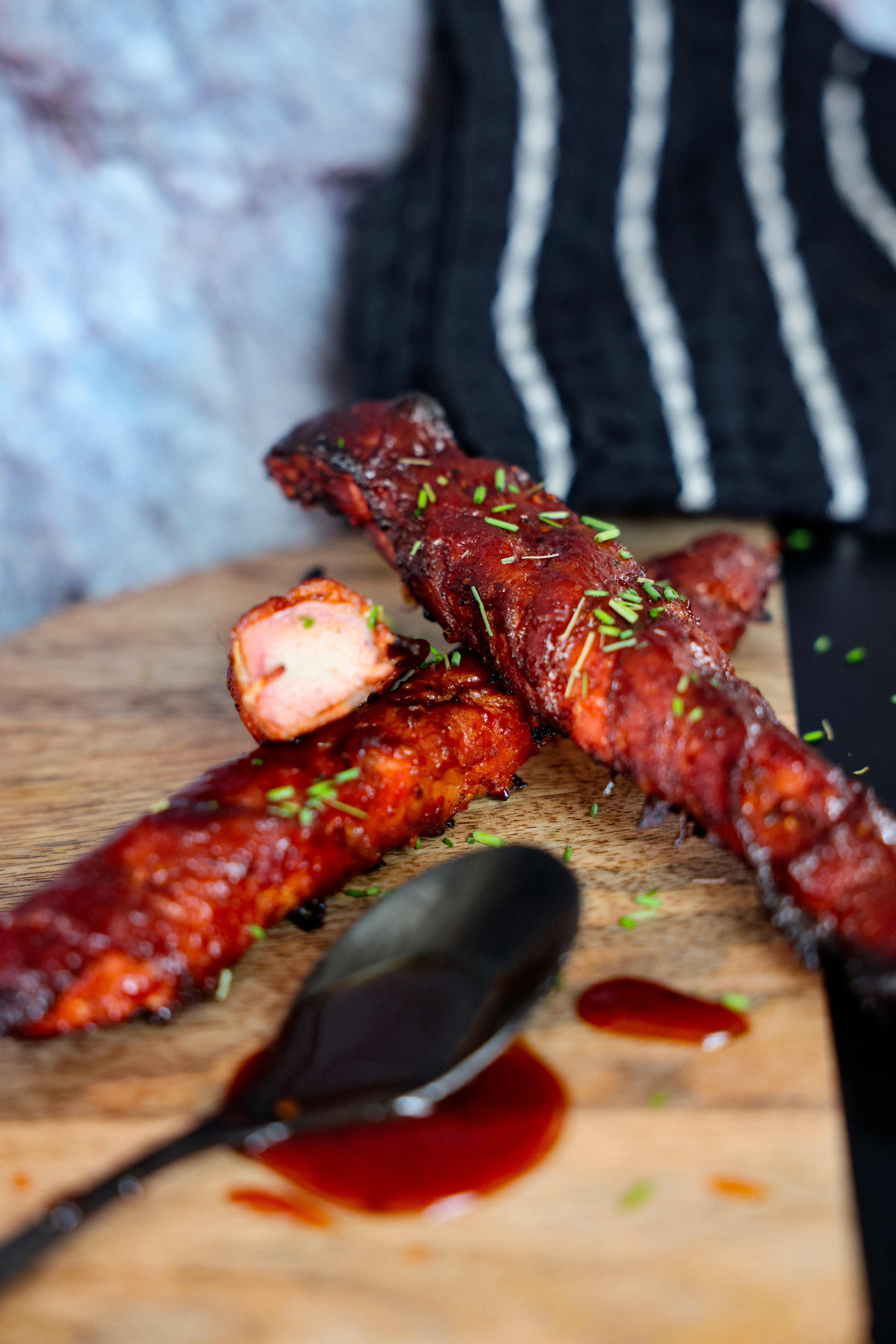 Pork tenderloin sticks wrapped in bacon
